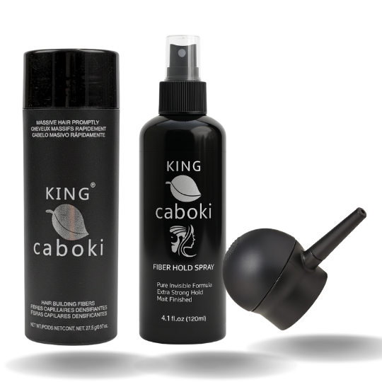This must-have 3-piece toolkit is designed to deliver a perfect King Caboki Hair Fibers application to help you instantly create fuller, thicker-looking hair.