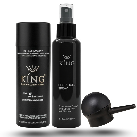 - King FiberHold Spray strengthens the bond between Hair Fibers and thinning hair while adding shine